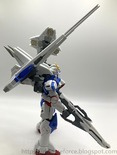 ミノフスキードライブの部分はどういった塗装にしようかと悩み、ゴールドをメインにしてみましたがこれはちょっと違ったなと後から思いました。やるならシールドと同じシャンパンゴールドのほうがよかったかもしれません。ライフルはオジリナリティを一番出したかったのでGR-SHOPさんのオリジナルライフルを使わせてもらいました。これまでのV系よりも威力があり、連射速度も上がっています。